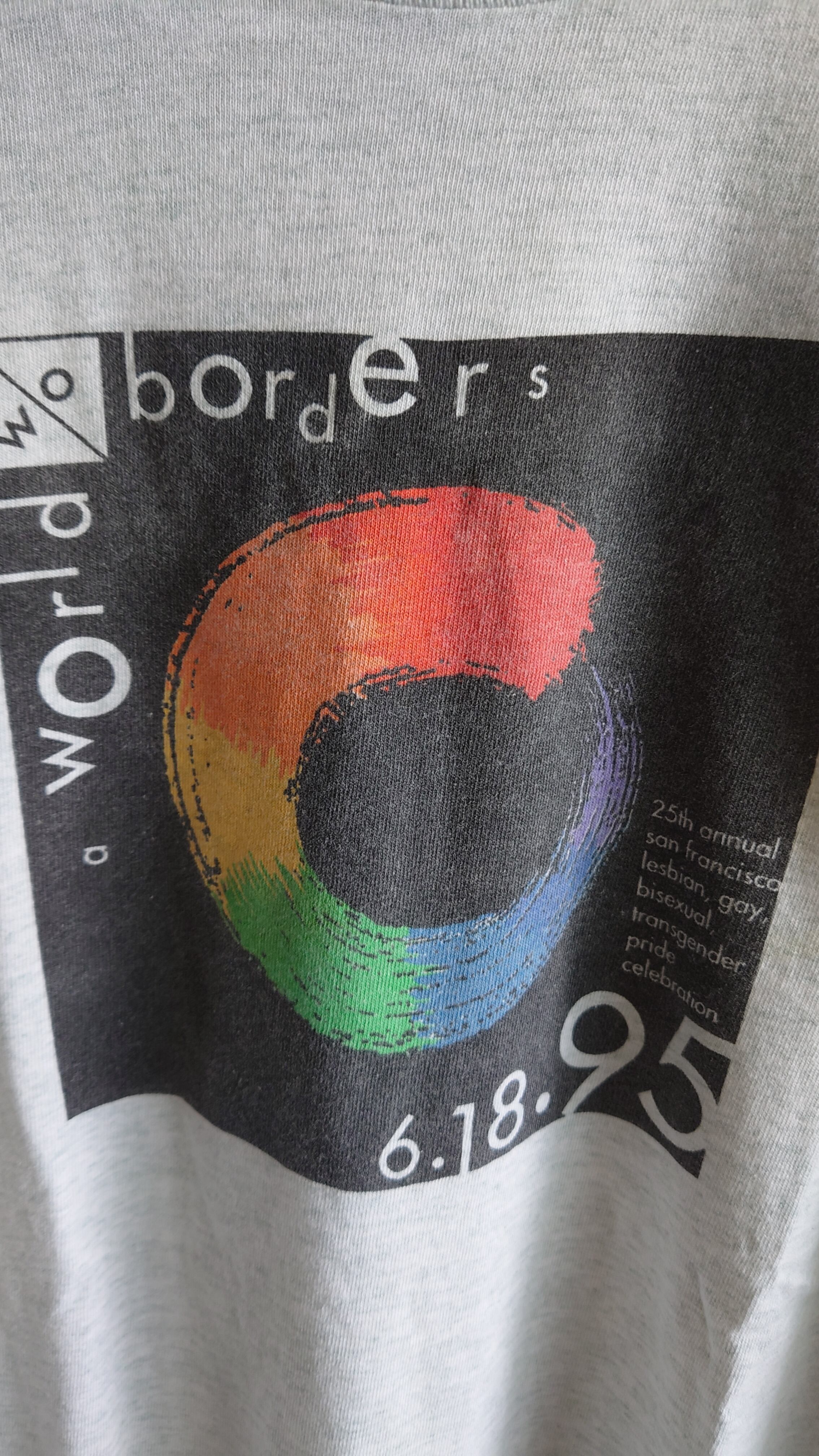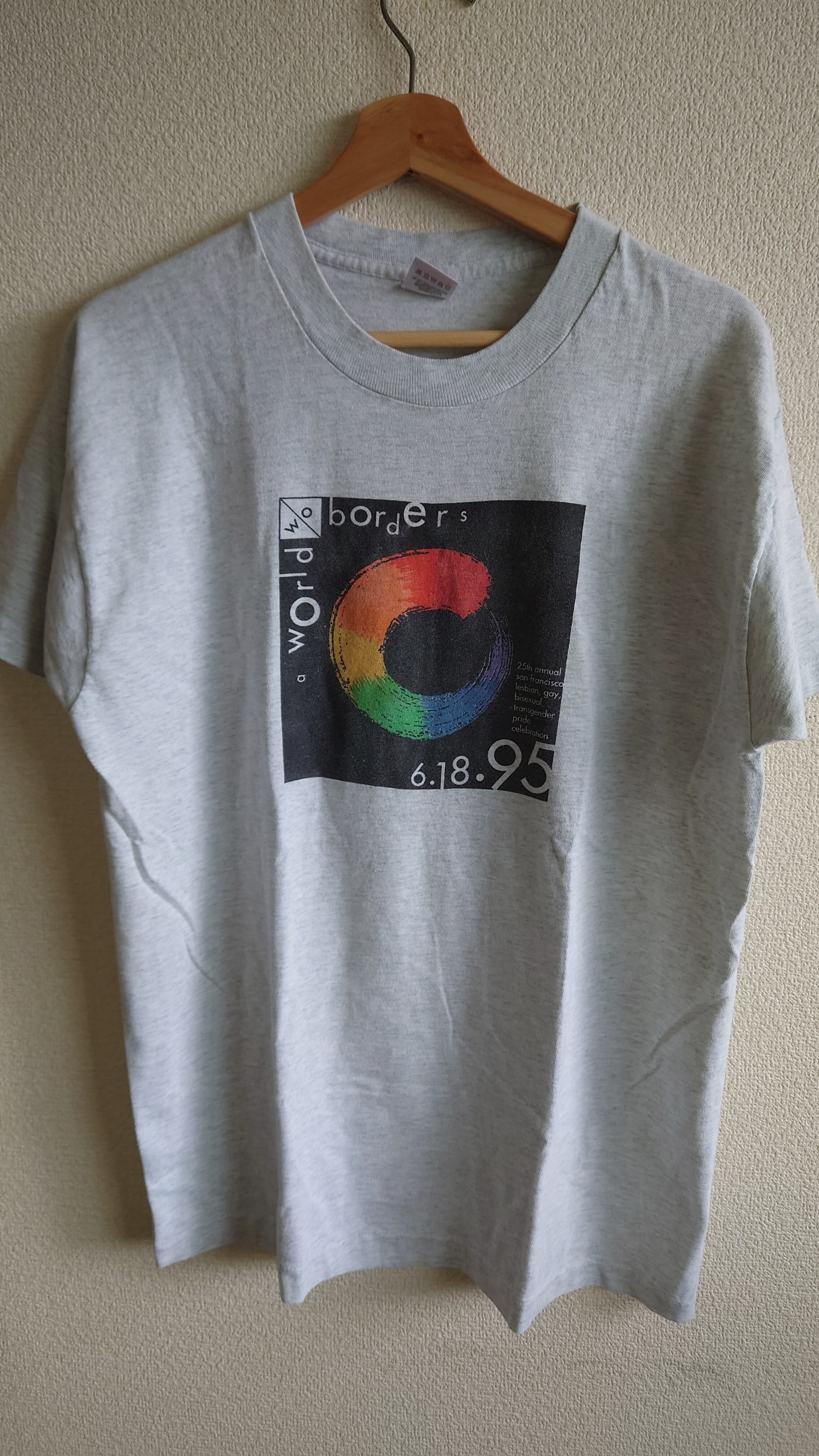 ■世界に境界線はいらない——1995年サンフランシスコ、自由のためのパレードTシャツ。90sオリジナル、レインボーの誓い。