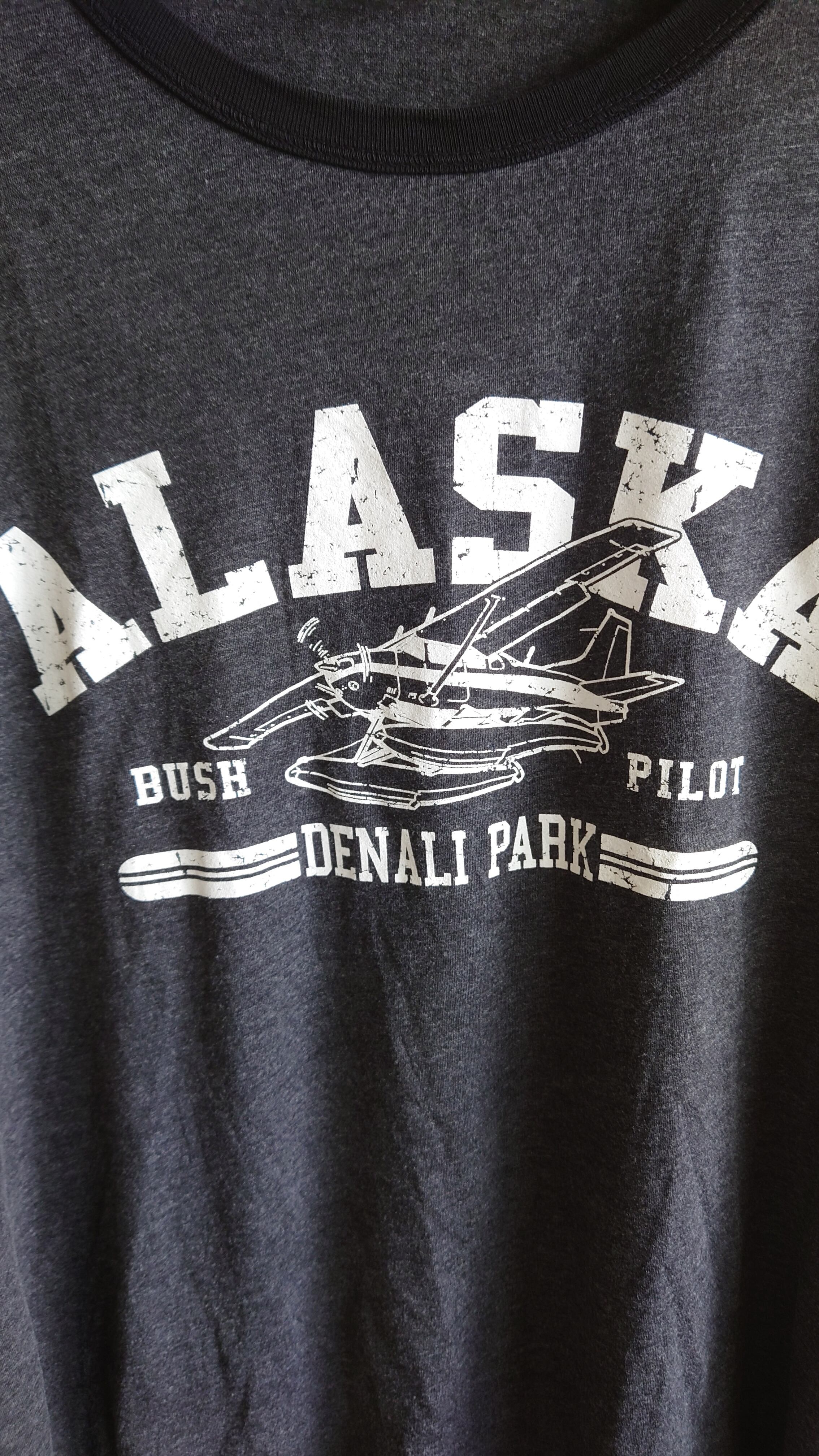 ■90年代アウトドアカルチャーを思わせる、ブッシュパイロットモチーフのラグランT。USA製、着心地のいい50/50ボディ、味のあるフェードブラック。アラスカ好き・飛行機好き・アメカジファンに刺さる1枚。ラフに着ても雰囲気が出る“抜け感系ビンテージ風Tシャツ”、今が狙い目です。