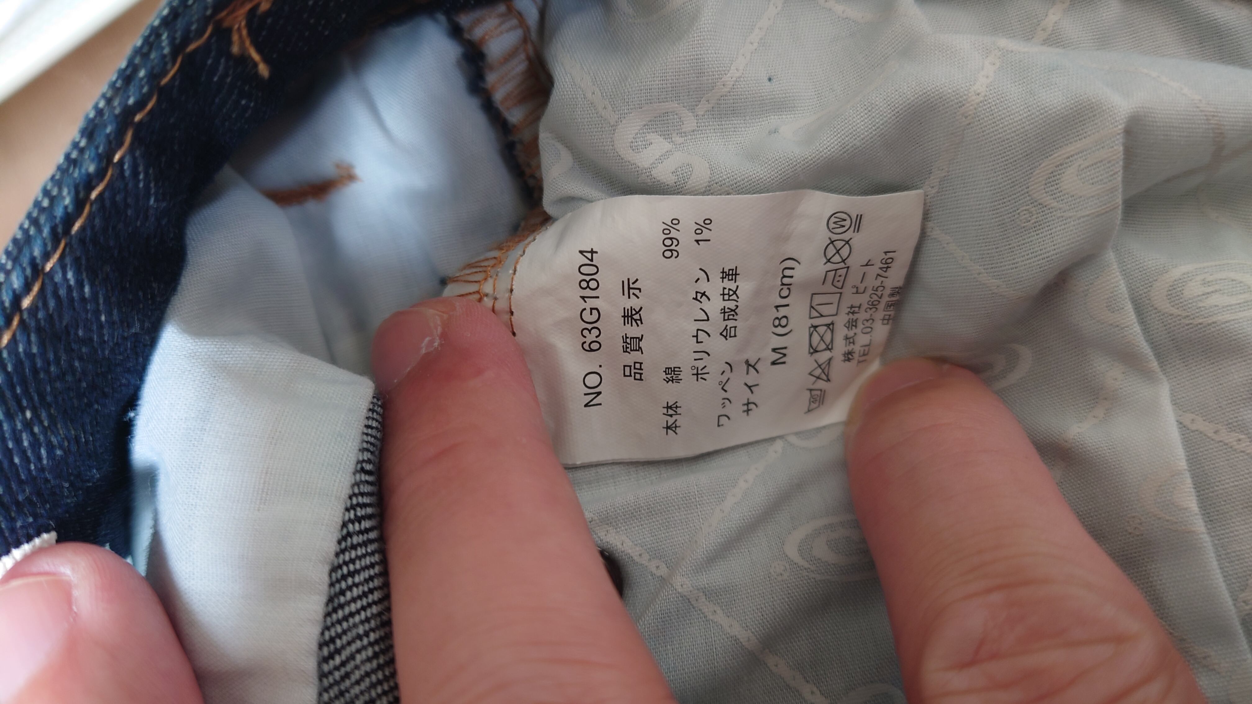 股下 82[内股の縫い目に沿って裾まで]